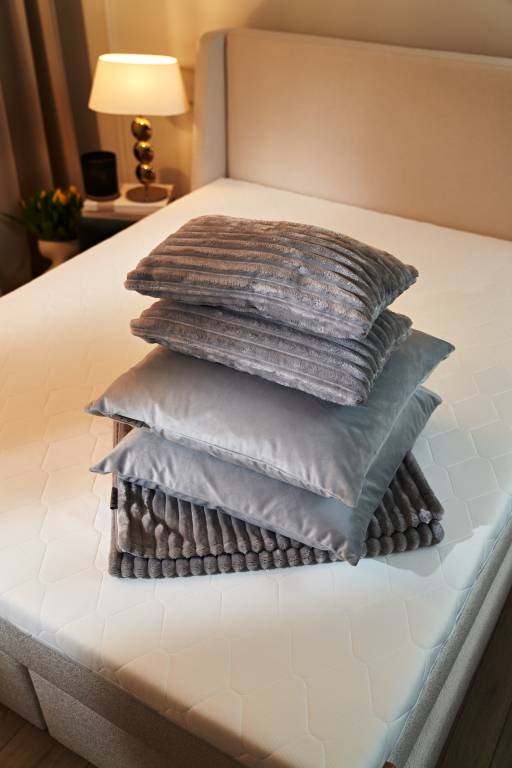 Add harmony and style to your bedroom with this unique blanket and cushion set. The set consists of four decorative cushions and an elegant bedspread, which together form a cohesive whole, perfectly accentuating the character of any bed. The set is ideal for both classic and modern interiors. The subtle colours will match any style of décor. The soft, tactile bedspread and cushions made from premium materials ensure durability and comfort. The set not only decorates the bed, but also creates a warm and cosy atmosphere in the bedroom.