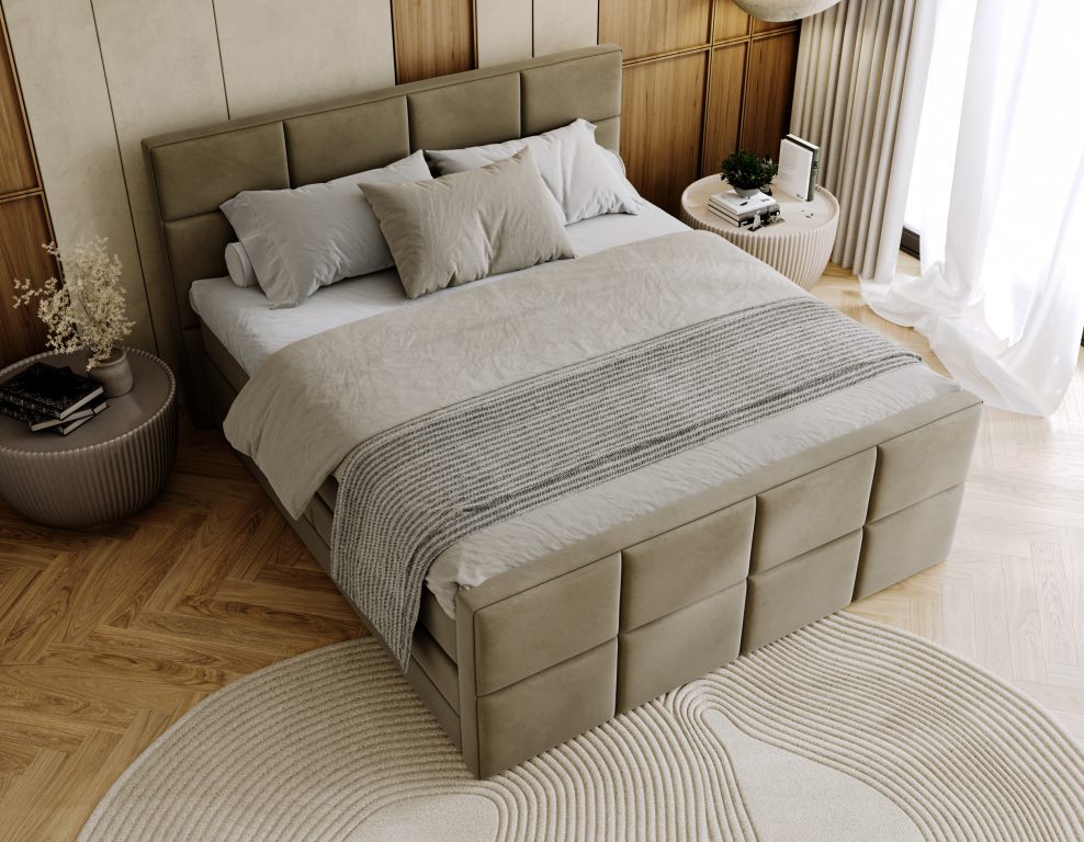 Łóżko Calla przepięknie prezentuje się w miękkich, welurowych, gładkich tkaninach, które podkreślają jego elegancję i nadają wnętrzu przytulny klimat. Dostępność w różnych szerokościach pozwala na dopasowanie do każdego rodzaju sypialni, zarówno z materacem pojedynczym, jak i podwójnym. Bogaty wybór tkanin i kolorów pomaga stworzyć łóżko idealnie odpowiadające Twoim gustom i potrzebom.