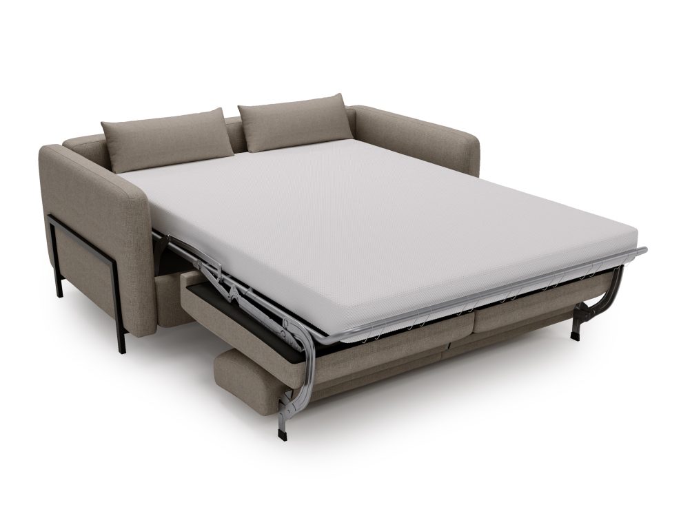 Wygodna sofa w dzień i wygodne łóżko w nocy. COMO to klasyczna sofa wypoczynkowa z oryginalnymi metalowymi detalami, wyposażona w całkowicie ukryty materac – łatwo rozkładany prostym ruchem. COMO to mebel wypoczynkowy o takim samym komforcie jak łóżko hotelowe.